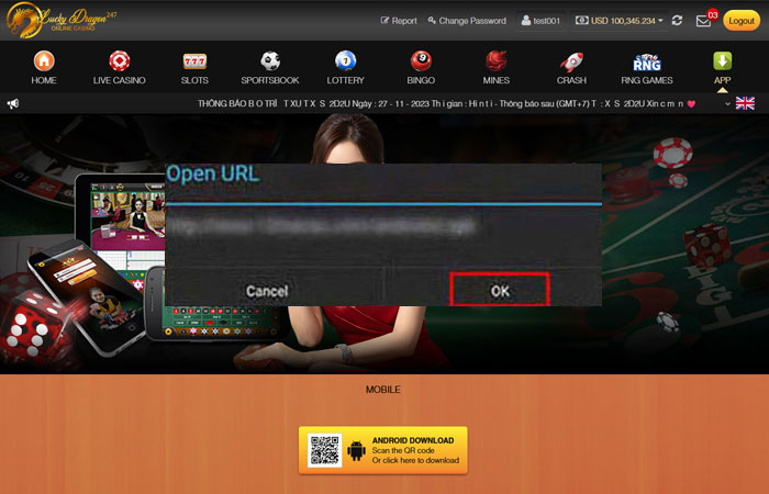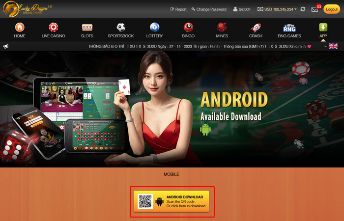 - To download the app, just click the Download button, or visit https://android1.alt-api.com/LiveCasino.apk with your mobile device, or scan the QR code. Existing players can login with their existing account details.